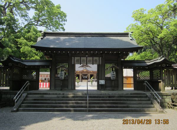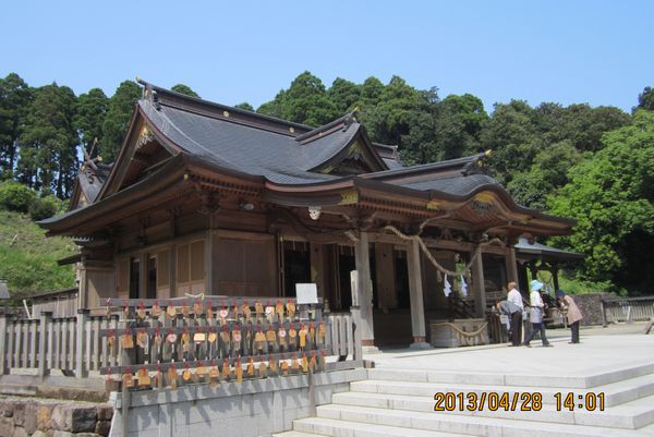 宮崎神社めぐり2日め、7社めの参拝は都農神社。朝、高千穂へ向かう途中一の鳥居の前を通りました。高千穂を回って14時に到着、予想より早く戻ってくることができました。境内は広く、四方に参道がのび、それぞれに鳥居が立っています。社殿の周りはあまり木がなく明るい感じです、昔は木が生い茂っていたのではないでしょうか。社務所の前に、「宮崎の神社めぐり」という雑誌がおいてあり、ここで購入できるのですかと尋ねたところ、おいてあるだけで販売はしていないとのこと、今晩宮崎市内で購入することにしました。