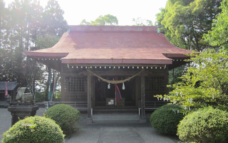 宮崎神社めぐり2日め、11社めは住吉神社ですが、ここは国道沿いにあるはずだったのですが、神社らしき建物、入り口が見当たらず、あるはずのところを通り過ぎ、国道と並行している道路を戻ってきたところ、鳥居が見つかりました。確かに国道の脇ではありますが、神社の裏手で国道側には入り口がありませんでした。おそらく国道が後から作られたためでしょう。残念ながら、社務所は無人で御朱印はいただけませんでした。看板の説明によれば、創建は古く、宮島の厳島神社の大鳥居の柱を提供した神社だそうです。