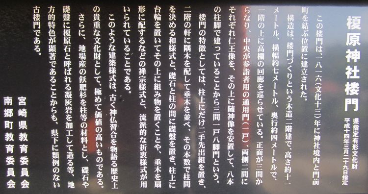 宮崎神社めぐり3日め、串間神社から来た道を宮崎へ戻る形で沿線の神社に参拝していく作戦。2社めは榎原(よわら)神社。田舎の山里に、忽然と立派な神社が姿を現す、といった感じでした。楼門あり、鐘楼ありで、境内社も大きく、とても立派な神社です。その昔は境内も広大で隆盛を極めていたのではないかと推測されます。由緒書によれば、創建は1685年、江戸時代初期、鵜戸神宮の心霊を勧請し、創建されたとありますので、比較的新しい神社ではあります。