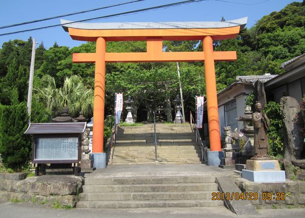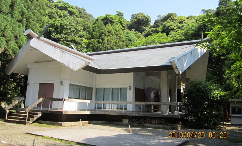 宮崎神社めぐり3日め、3社目の参拝は吾平津神社です。神武天皇の奥様、吾平津姫が祀られています。かつては「乙姫大明神」と呼ばれ、今でも「乙姫神社」と呼ばれているそうです。社殿は真っ白な近代的な建物に建て替えられていました。参道そばに住居を兼ねた社務所があり、呼び鈴を押したところ、娘さんらしき人が応対に出てこられ、御朱印を頂けないかと聞いたところ、宮司が留守にしているとのことでした。ということで残念ながら御朱印は頂けませんでした。