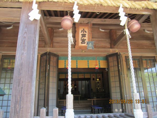 その後寬文二年(1662)九月十九日西海大地震の際高潮の災厄により下別府より大渡の上に奉還し(元、元宮町)、同年上野町に社地を築いて遷し奉った。その後正徳五年(1715)と享保二年(1717)に修理ご造営される。この年神祇管領卜部朝臣兼敬卿の筆になる「正一位小戸大明神」の八字を彫書した神額が奉納され今に現存する。