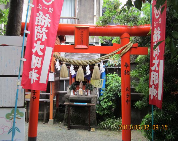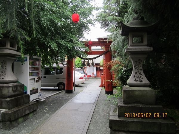 アーケード商店街に突然真っ赤な鳥居が現れます。