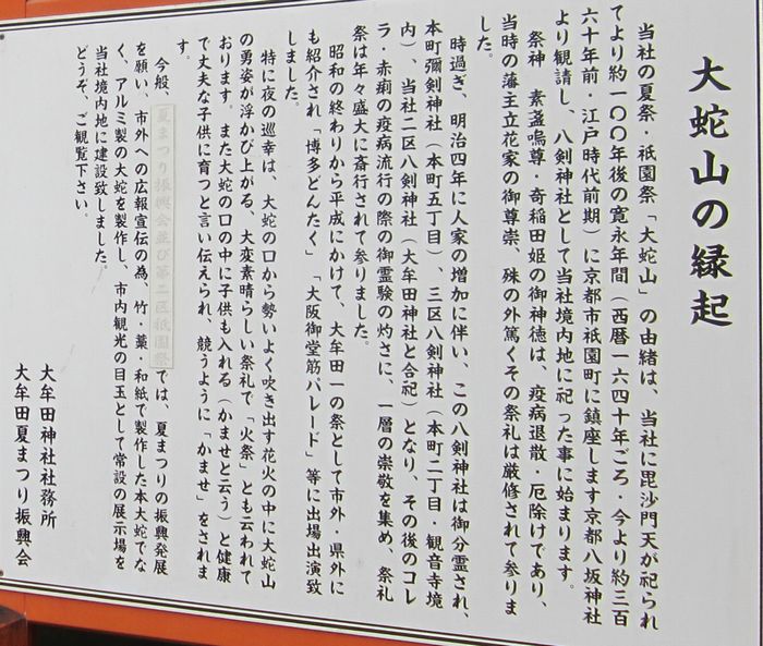 特に、当社夏祭り(祇園祭)の斉行に際しましては、年々盛んになり、今は大牟田一の祭事に数えられております。