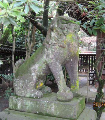 拝殿前の狛犬さん(左)