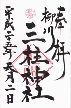 大牟田・柳川神社めぐり、9社めの参拝は三柱神社、三柱とは、柳川藩初代藩主、立花宗茂、その妻、立花誾千代(たちばなぎんちよ)、そして誾千代の父、戸次道雪(べっきどうせつ)の3人のことだそうです。宗茂は、関ケ原の合戦で西軍につき、合戦後領地は没収され、浪人になってしまいますが、後に初代藩主として復活したのだそうです。いきさつはよくわかりませんが、当時としてはあり得ないことです。そのため、職探しをしている方の参拝が多く、お守りを購入していくのだそうです。2005年6月に放火とみられる火事により、楼門と社殿が焼失、本殿はかろうじて残ったものの、被害は甚大で、現在再建中でした。御朱印を頂いた神職の方が気さくな方で、御朱印帳を渡すと、「高千穂神社の御朱印帳ですね、私の先輩がデザインしたものなんですよ」、などと話しかけてきてくれました。ちなみに、現在の宮司は、立花家18代当主だそうです。再建を祈念いたします。