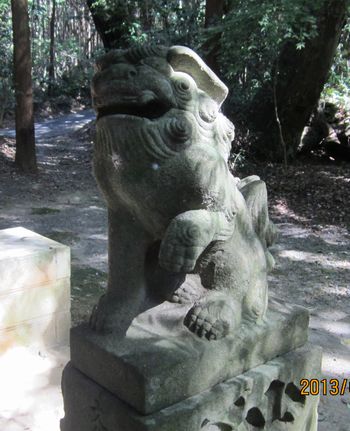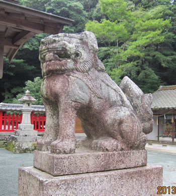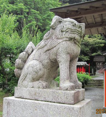 拝殿前の狛犬さん(左)