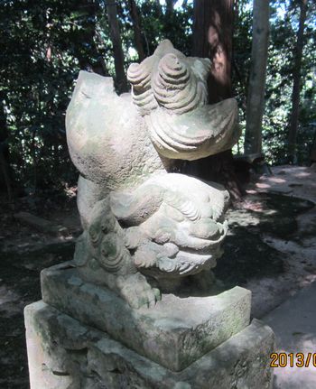 拝殿前の狛犬さん(右)