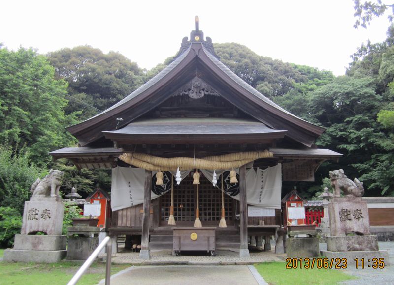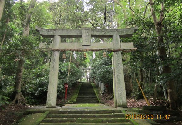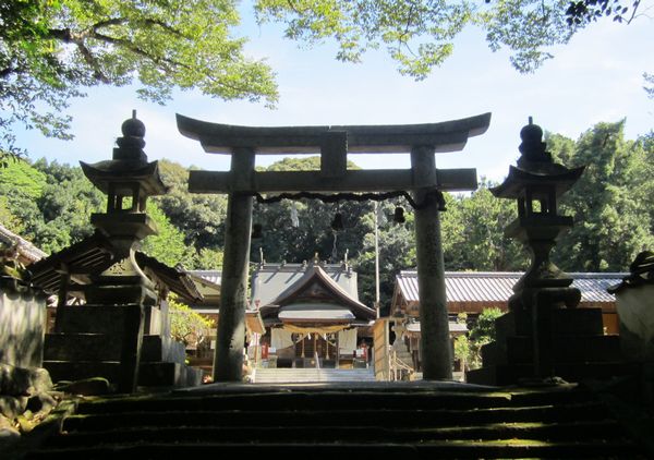 宗像市の八所宮に参拝してきました。一の鳥居からしばらく歩くと、二の鳥居が現われ、正に森が口をあけたような入り口です。本殿までの参道は静寂で、ウグイスの声が聞こえ、三、四、五の鳥居まであるくらい長い参道でした。参拝後、社務所で御朱印をお願いしたのですが、宮司さんが留守にしているとのことで頂けませんでした。対応してくれた神職の方が、申し訳ないと思ったのでしょうか、社務所から出てきていろいろ説明してくれました。「平和の鐘」という釣鐘が展示してあり、これはもともと八所宮にあったもので、秀吉が九州遠征の帰りに持ち去り、広島の厳島神社に奉納してしまったものだそうです。それを里帰りと称して昭和59年に八所宮にもどしてもらったそうですが、そのまま返却せずに置いてあるのだそうです。しかし、厳島神社からは返せと言われているそうで、もうすぐ返すことになっているとのことです。本殿には檻に入った木製の狛犬がありました。これは一度盗難にあったため、二度と盗まれないようにと檻にいれてあるそうです。
