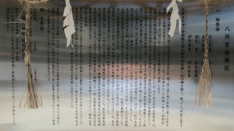 天照皇大神の御両親を始め神代四夫婦八柱の神を祭り、依って八所宮と言う