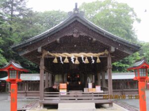 唐津神社めぐり、2社めは、宝当神社のある高島に鎮座している塩屋神社。宝当神社で御朱印を書いてもらっている間に参拝しました。高島山のふもとに鎮座し、宝当神社の祭神である野崎壱岐守綱吉が建立したのだそうです。社殿は近代的な建物になっていました。