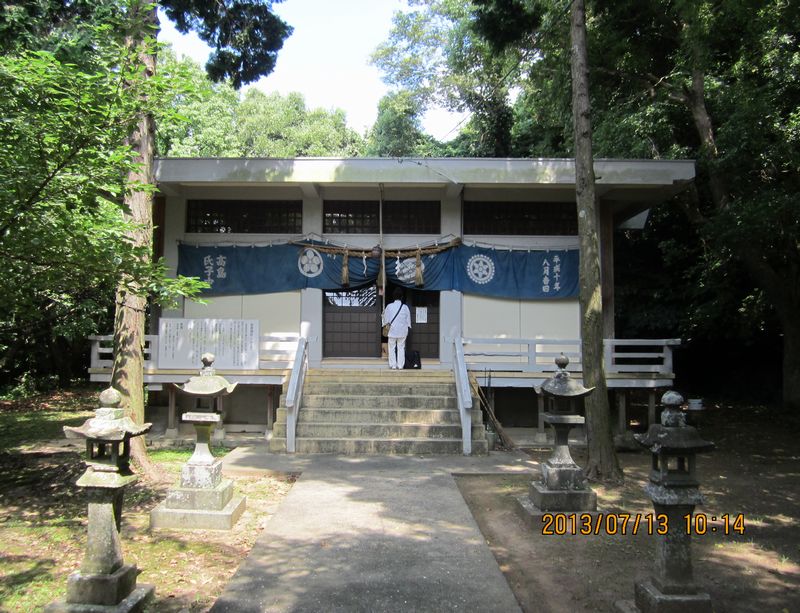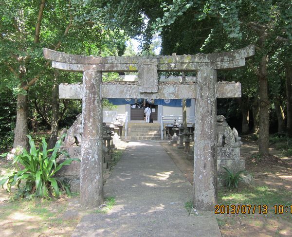 ここ高島の氏神様です。宝当神社の御祭神でもあります野崎隠岐守綱吉尊は、天正九年(一五八一)島民と相談の上、綱吉の祖先である藤原鎌足、その子不比等、不比等の孫の魚名を御祭神とした御宮を建立し、続いて産土神として大山祗大神をお合祀した。