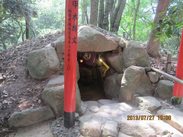 大宰府天満宮の末社で、裏手にある天開稲荷神社に参拝してきました。社殿は、天満宮の裏の小高い山の上にあり、暑い中汗だくになっての参拝でした。大宰府天満宮の御朱印帳を購入し、天満宮と天開稲荷神社、両社の御朱印を頂いてきました。ここは、古墳だったようです。