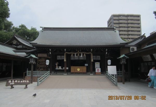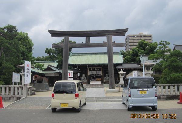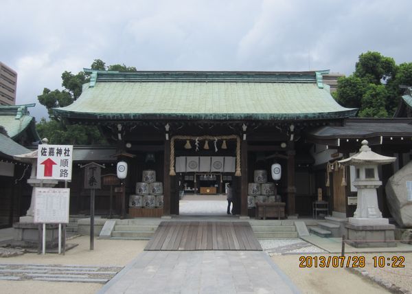 佐賀市方面神社巡り、佐賀市内の神社は、佐賀城跡近辺に集中しており、佐賀駅にある観光協会でレンタサイクルを借りて走り回りました。最初は佐嘉神社への参拝です。鍋島藩第10代藩主鍋島直正公、第11代藩主鍋島直大公を祭った神社で、創建は新しく昭和になってからです。鍋島直正は、別名鍋島閑叟、幕末の名君です。鍋島藩の藩祖鍋島直茂公、初代藩主鍋島勝茂公を祀った松原神社の境内に建立されたもので、すぐとなりが松原神社です。現在では佐嘉神社がメインとなっているようです。松原神社も含めた境内には、7社詣で巡りというスタンプラリーがあり、7社しっかりめぐってきました。