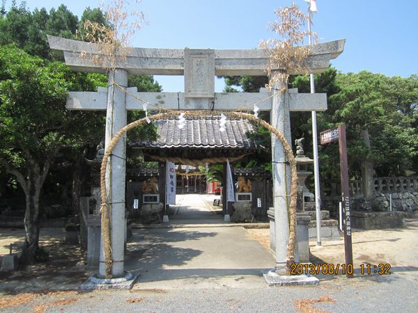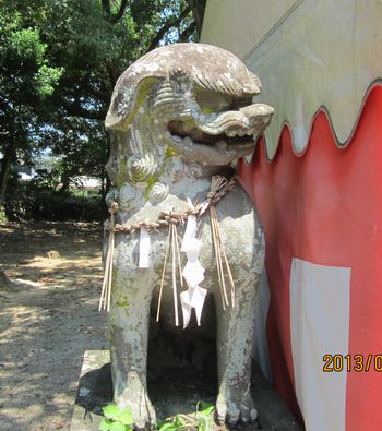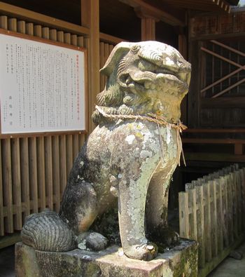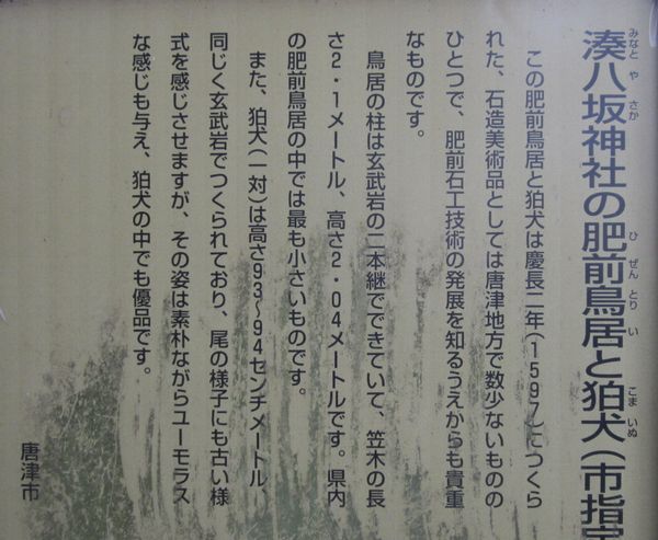 佐賀方面、車での神社めぐり、3社めは湊疫神宮、地元では疫神(やくじん)様と呼ばれ、厄除けの神様として親しまれているそうです。当初、参拝の予定に入っていなかったのですが、会社の知人から教えてもらい、急遽参拝することにした神社です。拝殿と本殿の間にある肥前鳥居と狛犬が有名です。また、神門の前には唐津焼の狛犬ならぬ狛獅子が参拝者を迎えてくれます。神社の入り口の脇に社務所兼宮司さん宅があり、御朱印を頂けるか電話で確認したところ、宮司さんは電話に出たのですが、携帯へ転送されたもので、不在のため頂くことができませんでした。