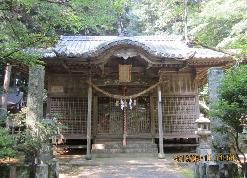 與止日女命(ヨドヒメノミコト)を主祭神とし、後代に建御名方神(タケミナカタノカミ)菅原道真公を合祀しています。長久2年(1041年)、諏訪大明神の神助により眉山の“獅鬼”を退治し、その頭を境内に埋め「埋牛塚」と称し祀られました。