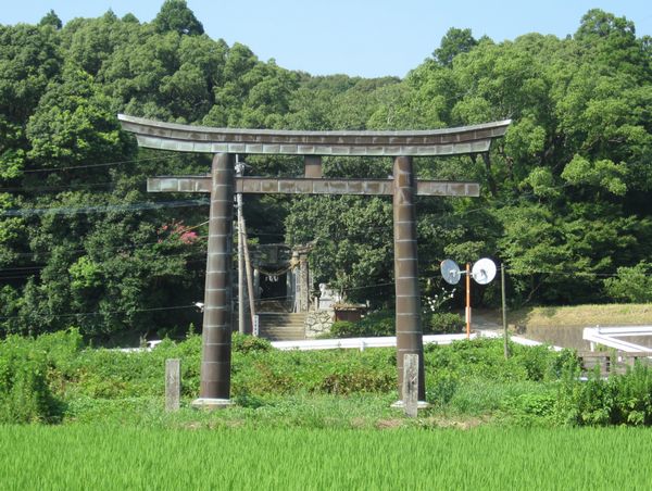 佐賀方面、車での神社めぐり6社めは伊万里市に鎮座する淀姫神社です。呼子から名護屋城跡の県立博物館を見学後、唐津経由で伊万里/有田市方面へ向かいました。創建1450年を迎える古い神社で、明治以前は河上大明神といわれていたそうで、田園風景の山すそに鎮座しておりました。一の鳥居が境内前の田んぼの中に立っているのが不思議です。昔は参道がもっと続いていたのかもしれません。ここは伊万里市、陶器の町、大きな伊万里焼の狛鯱、盗難防止のためか金網で覆われています。また、ここ大川町はかつては唐津藩だったそうで、湊疫神宮と同じ唐津焼の狛獅子もありました。落ち着いた、静かな神社です。御朱印は、境内入り口の社務所を兼ねた宮司さん宅で頂きました。