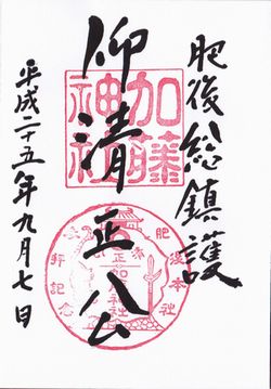 熊本市内神社巡り、12社めは加藤神社、名前の通り加藤清正を祀った神社です。熊本城内の天守閣とひとつ堀を隔てた場所に鎮座しています。加藤清正は歴史上でも有名ですが、当時から人気のある武将だったのでしょう。細川家が熊本城入城の際、加藤家に礼をつくして入城したというのをどこかで読んだ覚えがあります。加藤家に対して無礼をはたらくと、庶民を敵に回すことになってしまうためであったようです。