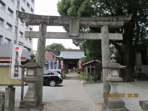 熊本市内神社巡り、15社め、本日最後の参拝は山崎菅原神社、菅原の道真を祀っています。境内に一坪足らずの小さなプレハブの社務所があり、若い神職の方が対応してくださいました。小さな社務所でトイレも無くどうしているのだろうと思ったら、社殿のすぐ裏手に住まいがあるようでした。参拝後、電動アシスト付レンタサイクルを返却、「高速バスひのくに号」で帰ってきました。