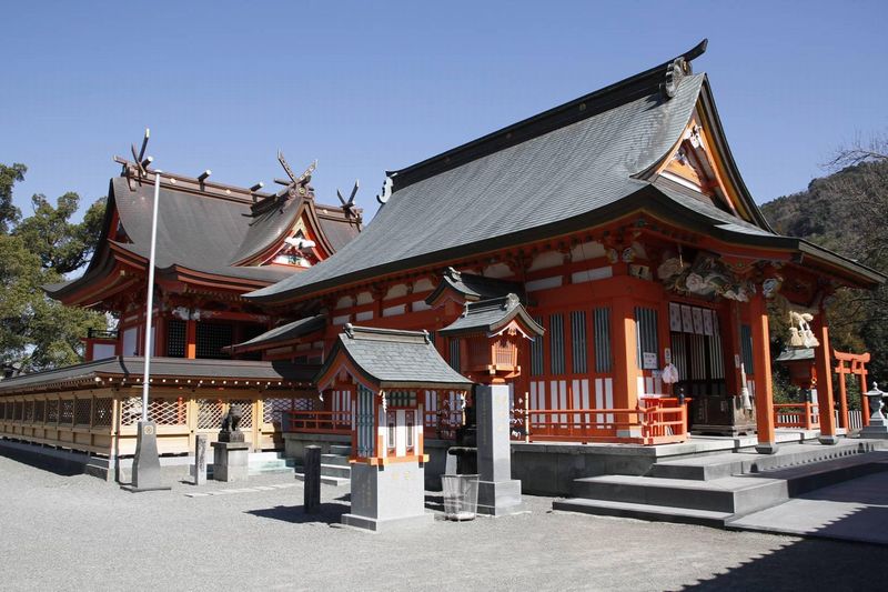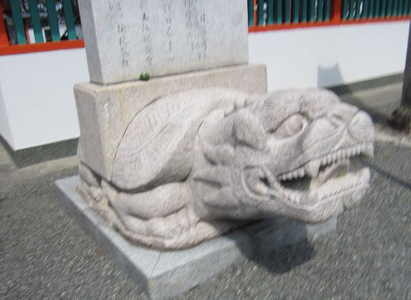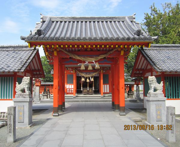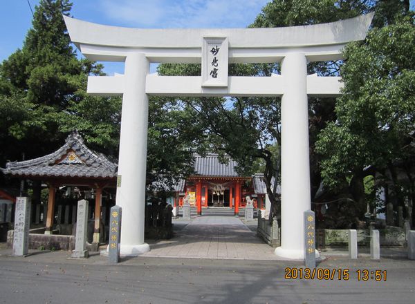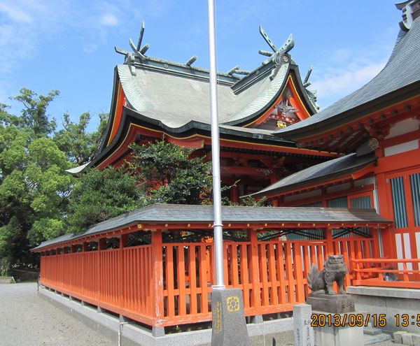 レンタカーでの熊本県神社巡り、7社めは八代神社です。青井阿蘇神社から、高速で八代までとんぼ返り、このころから台風の余波で風が強くなってきました。真っ白な鳥居と朱色の社殿が印象的です。敷地が広く、がらんとした感じもありました。帰ってきてから気が付いたのですが、拝殿の写真がありませんでした。撮ったつもりで撮ってなかったようです。そこで、拝殿の写真はホームページから借用しました。