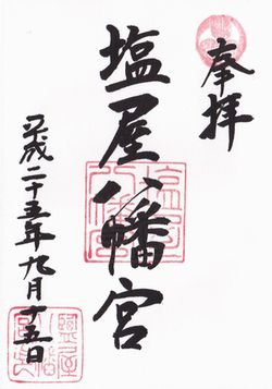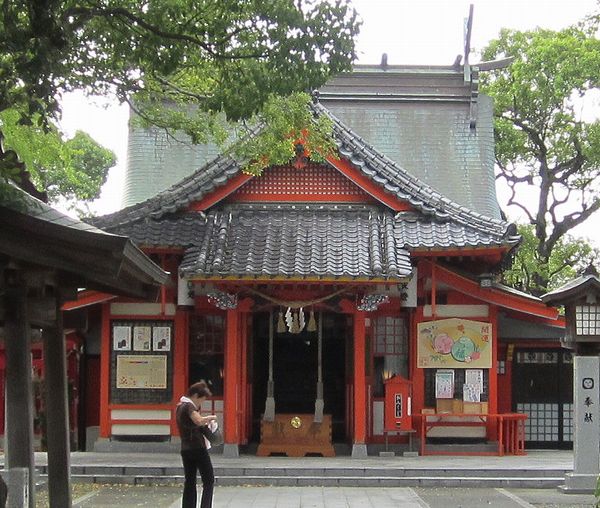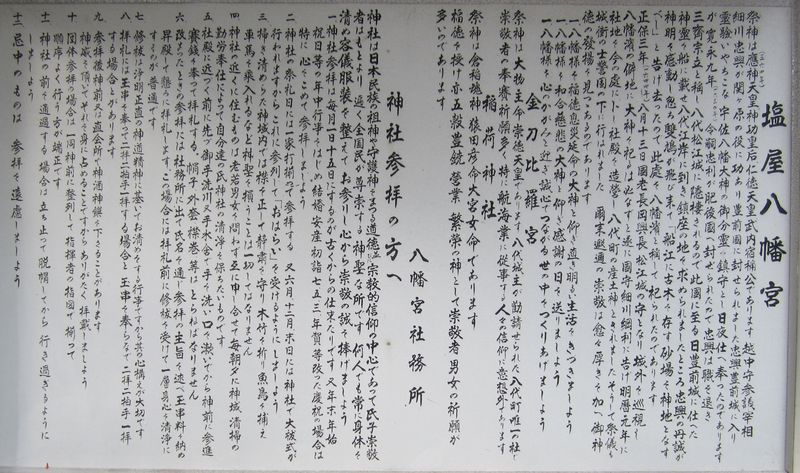 レンタカーでの熊本県神社巡り、11社めは塩屋八幡宮です。狭い道路で、ナビも正確ではなく、迷ってしまいました。朱色の社殿が華やかでした。八幡宮ですから、応神天皇、神功皇后を祀るのは普通ですが、ここは仁徳天皇も祀っています。