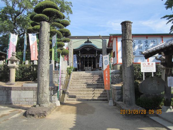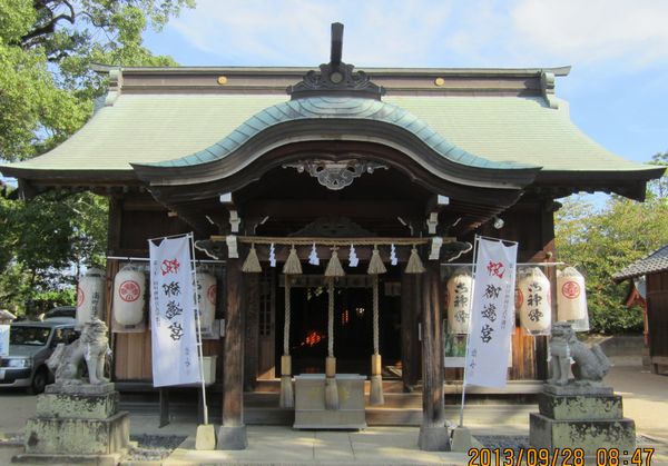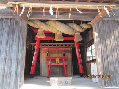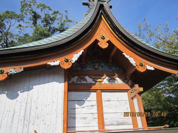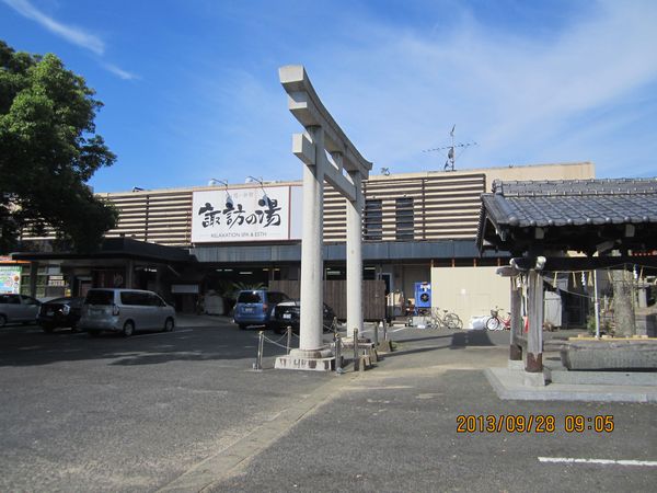 北九州方面の神社めぐり、1社目は福津市の諏訪神社を参拝、朝一番の参拝です。境内の左手には日帰り温泉「諏訪乃湯」があり、東参道入り口は、温泉と神社の共通の入り口になっています。温泉の前を通り過ぎて参拝した時に、拝殿近くで何か片づけをしているおじさんがいたのですが、まさか宮司さんとは思わず、社務所で呼び鈴を鳴らしたところ、社務所の中からではなく、境内から何でしょうか、との声が、このおじさんが宮司さんでした。ちょうど昨日と一昨日がお祭りだったようで、その後片付けをしていたところのようでした。たいへん気さくな方で、宗像大社沖津宮へ参拝したときのお話などをしてくださいました。