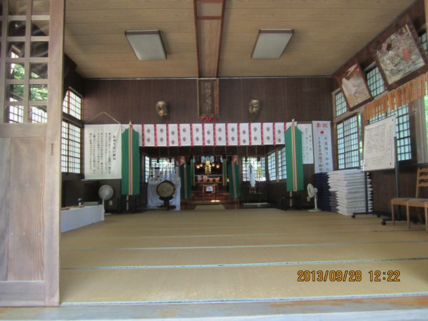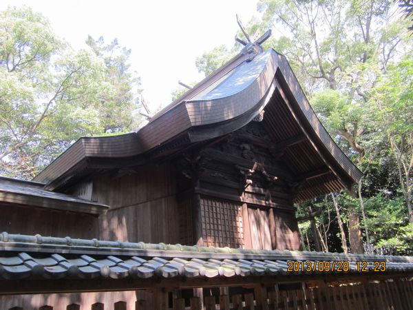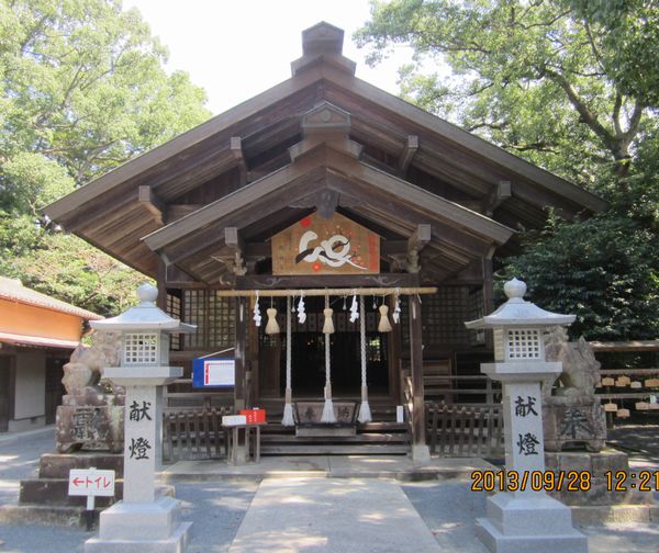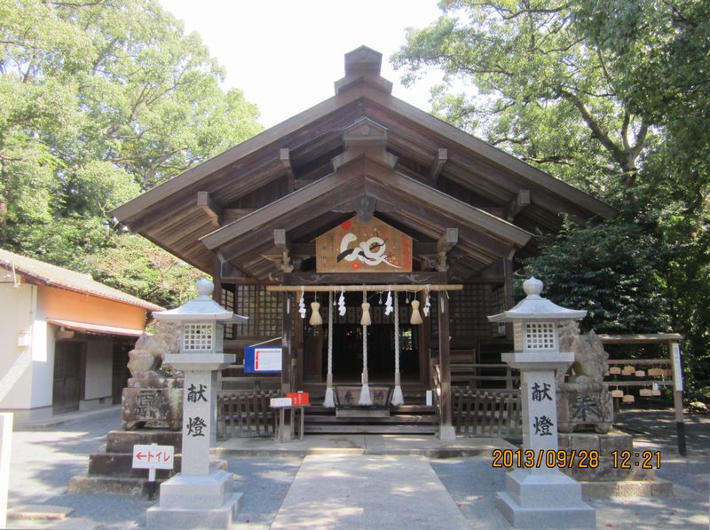 現在の神殿は天保14年(1843)に再建。かつてはすぐ近くを流れる遠賀川のほとりに惣社山(中間市唐戸町の水門近くが山であった)に祀られていたのを、江戸時代の堀川運河の開掘のため、現在地に移された。と言われています。