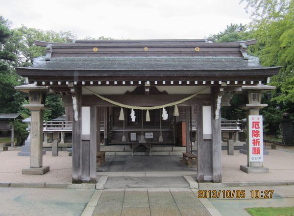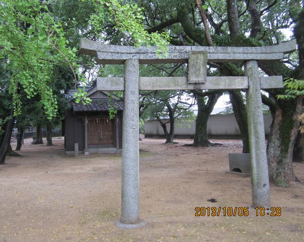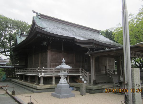 福岡北部方面、駅から離れた神社を中心にレンタカーでの神社めぐり、2社めは岡湊神社です。雨上がりで増水した遠賀川の土手の道路を北へ走った先に鎮座していました。境内は広々としており落ち着きのある神社です。「なんじゃもんじゃの木」が有名のようです。日本書紀に出てくるたいへん古い神社で、主祭神は、大倉主命(おおくらぬしのみこと)と莵夫羅媛命(つぶらひめのみこと)、その後素戔嗚尊を配祀し、さらに神武天皇社も合祀したそうです。境内から道を挟んだ先に社務所があり、そこで御朱印を頂きました。御朱印を対応してくださった宮司さんが、神武天皇社の御朱印も書いて下さいました。