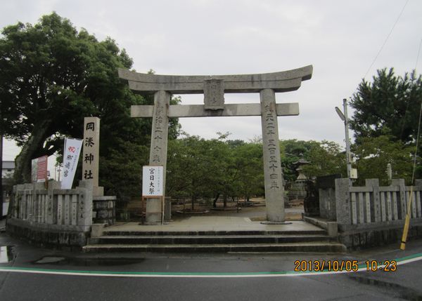 岡湊神社は、「(日本書記)巻第八人皇第十四代仲哀天皇条(西暦199年)」に記されている「崗の浦(おかのうら:芦屋の古称)」の「大倉主命(おおおくらぬしのみこと)・菟夫羅媛命(つぶらひめのみこと)」の二柱を主祭神としている。