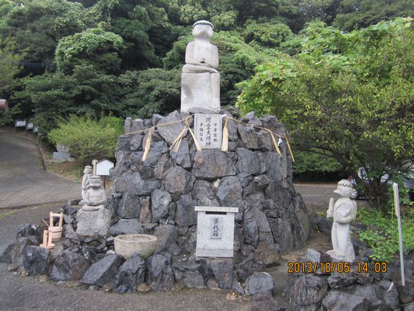 福岡北部方面、駅から離れた神社を中心にレンタカーでの神社めぐり、5社めは皇産霊神社です。北九州から高速道、都市高速を使って向かいましたが、出口を間違えて北九州の高速を一回りしてしまい、たどり着くのに苦労しました。参道入り口の脇には沢山の河童の像があります。社殿の裏には、七福神の像や縁結びの石、稲荷神などがありますが、社殿から裏に足を踏み入れたときに、何となく荘厳さを感じました。これがパワーなのでしょうか。社務所は無人で御朱印は頂けませんでした。