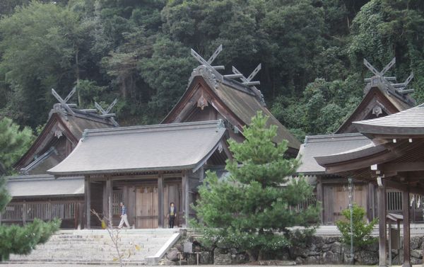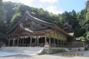 大社造りの三殿並立の社殿は神社建築史上特筆すべきものであり国の重要文化財に指定されています。特に向かって左の南殿は通常の大社造りの構造とは逆に作られており他に類例を見ません。