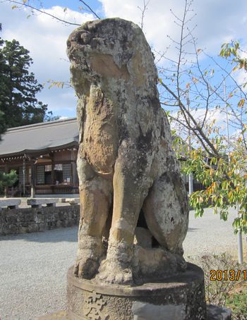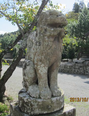 比較的大きめで、痛んでいますが、美保神社の狛犬さんに似ています。