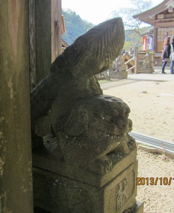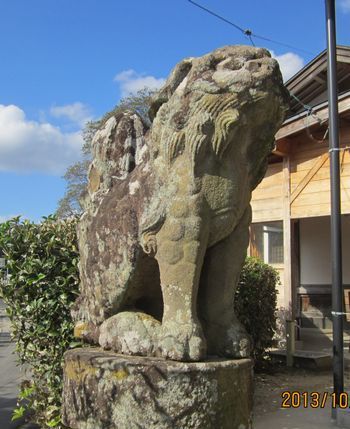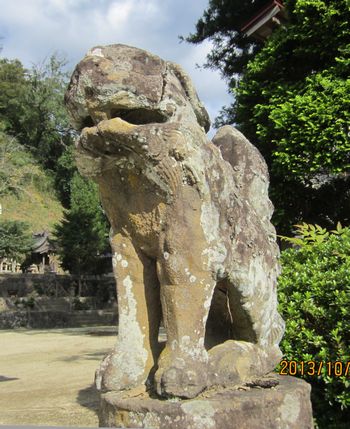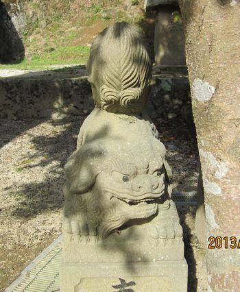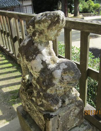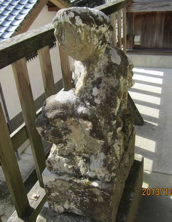 尻上げポーズの狛犬さんです。