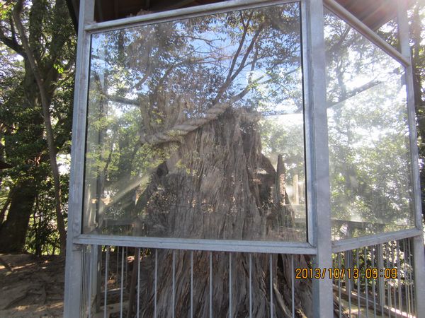 豊臣秀吉の朝鮮出兵の折、100日祈願をした。その恩賞を持ってきた片桐且元が弓を立てかけた松、だそうです。