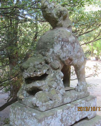 八束水臣津野命(やつかみずおみつぬのみこと)は「八雲立つ出雲の国は、少し小さく作ってしまった。作り足そう。」とおっしゃいました。最初に神は「朝鮮半島に余った土地があった。」と見つけて、鋭い鉏で魚のエラを一刀両断にたつように切り取り、三本綯いの太い綱を結び「国来い、国来い。」と掛け声をかけながら、ゆっくりゆっくりと引き寄せて縫い合わせて行かれました。そうしてできた土地は、去豆の地溝帯から西の杵築の岬です。杭は出雲国と石見国の境にある三瓶山で、綱は薗の長浜(長浜神社のある海岸線)です。