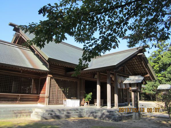 出雲方面神社巡り2日め、3社めの参拝は長浜神社です。日御碕神社から戻ってきたところで、反対車線に出雲大社へ向かう車の渋滞が発生していました。ほとんどが県外ナンバーです。長浜神社は稲佐の浜の南に2、3kmのところに鎮座しています。小高い山の上に鎮座しており、ふもとの参道から歩くと結構な距離でした。ちょうど今日と明日が例大祭ということで、境内には出店が準備しており、関係者が集まり始めたところでした。長浜神社は、国引き神話と妙見伝説のお宮だそうで、御朱印にある北斗七星は妙見伝説の象徴です。