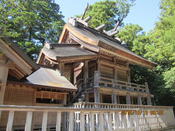 出雲方面神社巡り2日め、4社めの参拝は須佐神社です。長浜神社から南へ山の中約20km、50分のドライブです。ここは素盞嗚尊(すさのをのみこと)の終焉の地と言われています。ということはお墓があるのかと思ったのですがそれらしきものはありませんでした。ここの本殿も大社造りで威圧感があり、荘厳さを感じます。ここも日御碕神社と同様に、天照社とペアになっていました。
